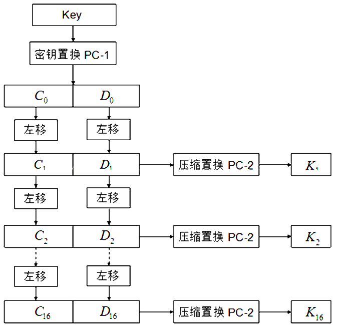 下面是获取子密钥 Ki 的流程图: